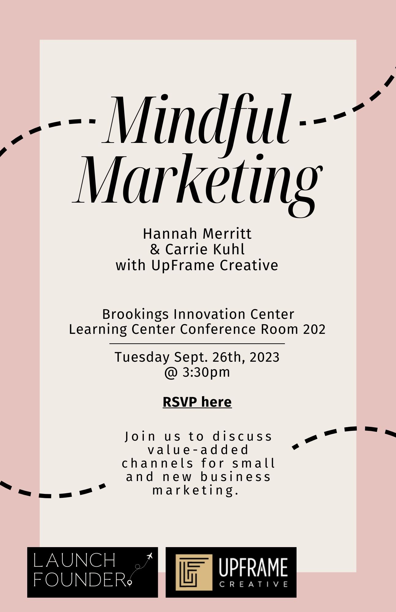 Join us for the first Launch Founder Workshop on Mindful Marketing for new and small businesses. We invited Upframe Creative to share some ideas on where to focus your marketing efforts.